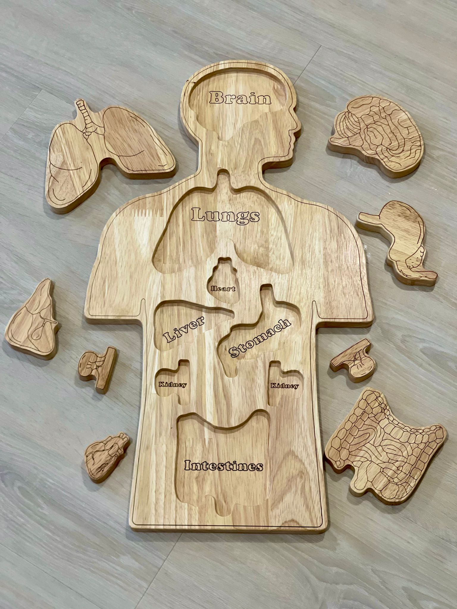 Teach your child about human anatomy with our beautiful wooden Human Body Anatomy Puzzle. The puzzle is the easiest way to teach your child about organs that make up the human body. You can use the anatomy puzzle to help your child gain an understanding of the uniqueness of the human body.